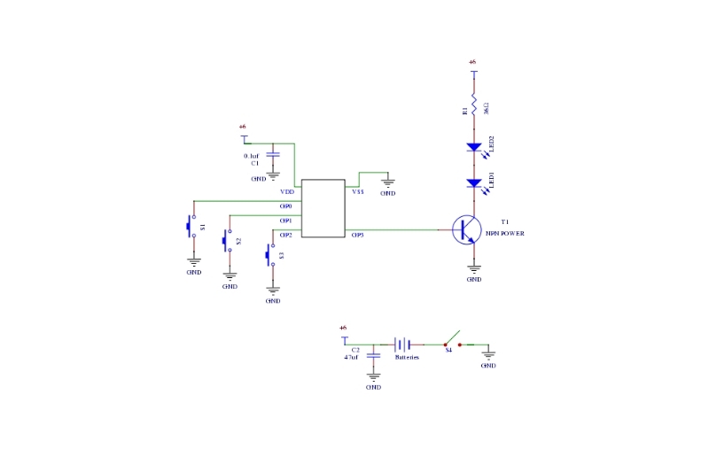 I began by using ExpressSCH to lay out a schematic of the circuit required to power the microprocessor and LEDs. I used I then used Google SketchUp to create a mocked up 3D model of the remotes appearance. Using ExpressPCB, I then arranged the parts in a real world design that would fit the mock up. I calculated all the required values for parts, such as resistance for the resistors, and current for the LEDs, then ordered them from Digikey.com. I then used circuit board coated with photosensitive chemicals to print my circuit onto the board, through a multi-step chemical process. After cutting the board down to size, I soldered all the parts in.